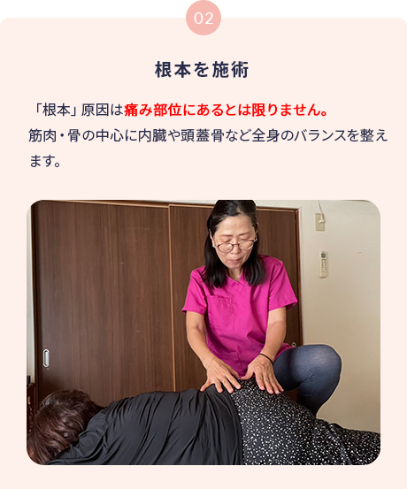 明確な原因がわかった上で施術をすることにより、あなたの痛みを劇的に改善させることができます。