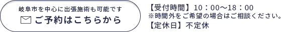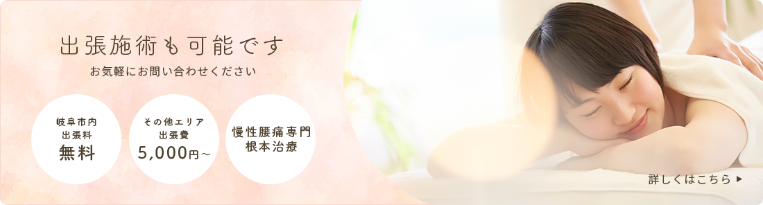 当店はマンツーマンでしっかりとお客様のお悩みに寄り添います。別途出張費をいただく場合がございますが、岐阜県近隣の県外もお問い合わせ承っております。外出が難しい方や、忙しい方はぜひ出張施術をご検討ください。